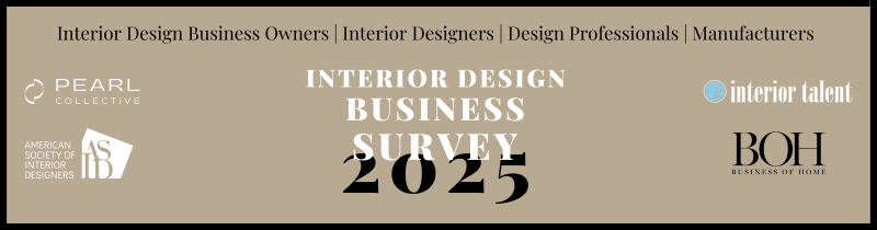 The 2025 Interior Design Business Practices Report is coming soon! Keep an eye out for your chance to contribute to this massive industry survey. This brief 15-minute survey will gather insights on fee structures, operations, and growth trends across the industry. Then receive your free report in April 2026 to see what your peers are experiencing.